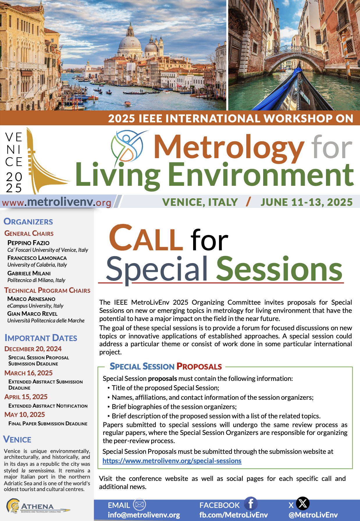 The Program Committee is inviting Extended Abstracts (from 4 to 5 pages) for the IEEE MetroLivEnv 2025 Workshop.